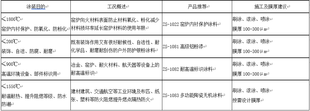 5、應用在≤1550℃耐溫耐熱、防火阻燃、耐酸腐蝕、封閉防氧化、防水防潮、覆蓋保色、隔熱節(jié)能、耐磨抗沖擊、耐氧耐紫外——ZS-1083;